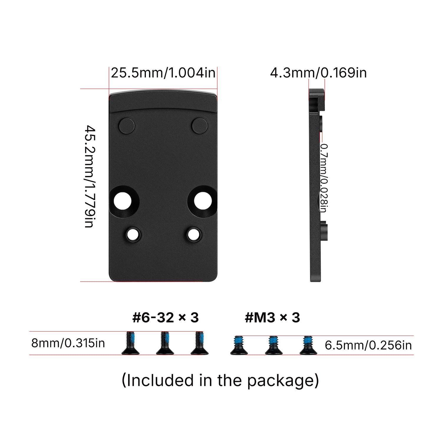 • Universal compatibility: Compatible with RMSc and K-footprint red dot sights.