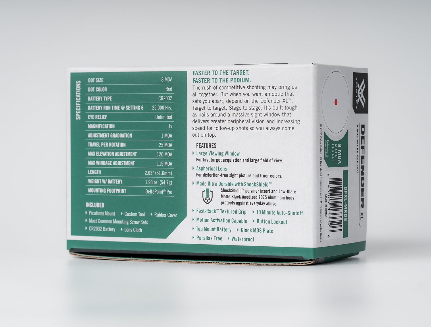 Built around an ultra-wide sight window for faster target transitions, the Defender-XL is a rugged, competition-ready micro red dot that also works great on duty or range pistols—and on carbines/shotguns when used with the included Picatinny mount.